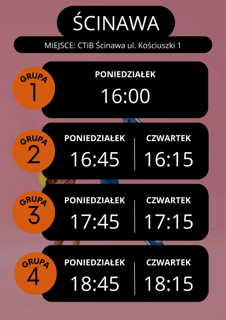 TYTUŁEM: Za zajęcia sportowe taniec, miejscowość: Ścinawa, grupa: (1/2/3/4), imię i nazwisko dziecka.