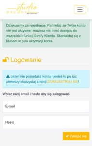 1/ zaloguj się poprzez wpisanie adresu mail oraz utworzonego w poprzednim kroku hasła