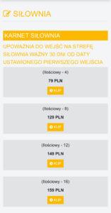 3/ wybierz SIŁOWNIA lub ZAJĘCIA GRUPOWE